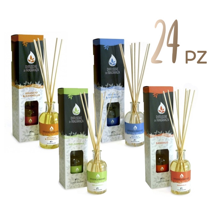 Diffusore di fragranza 100 ml. Nipar ti propone inebrianti fragranze per profumare gli ambienti: Gelsomino, Arancio e cannella, Sandalo, Iris blu e vaniglia.