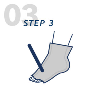 Il terzo step consiste nel tagliare le punte del calzino lasciando le unghie libere per poter procedere al trattamento pedicure, spingendo le cuticole con il bastoncino d’arancio per poi successivamente eliminarle.