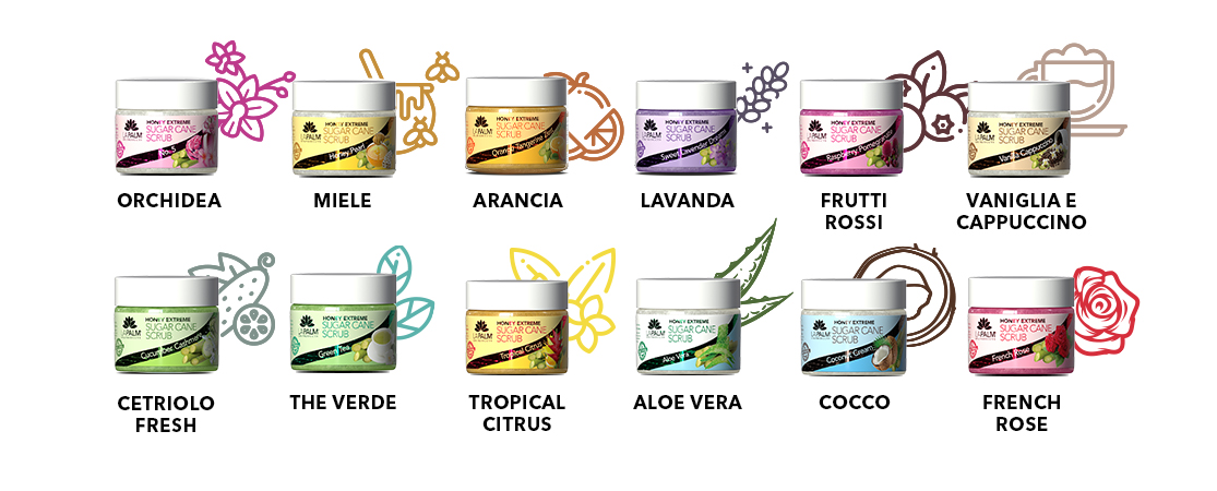 Come già anticipato, gli scrub sono disponibili in ben 12 fragranze deliziose.